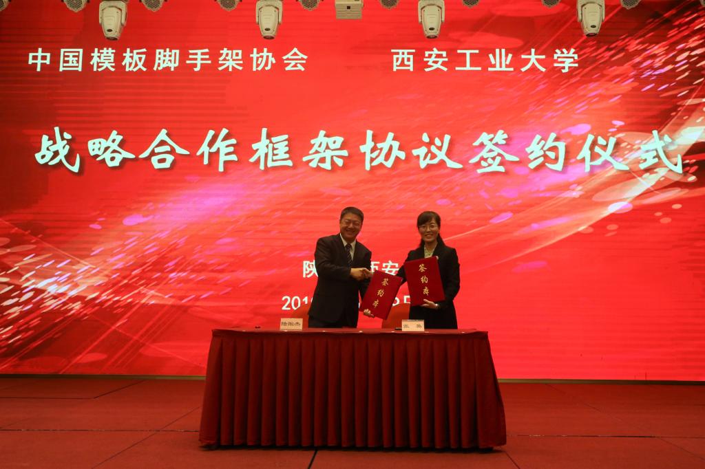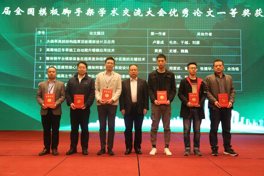 会上,中国模板脚手架协会理事长陆贻杰和我校857直播党委书记张英代表协会与学校签订了战略合作框架协议。大会为17家诚实守信企业和20篇优秀科技论文获得者颁奖,我校选送的1篇论文获得一等奖,3篇论文获得二等奖。