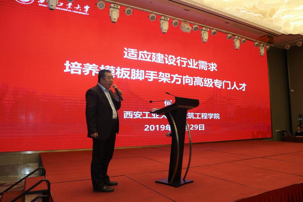 校党委副书记吴介军、中国模板脚手架协会理事长陆贻杰和陕西省土木建筑学会理事长薛永武致辞,希望通过大会召开进一步加强校企之间的合作和交流,推动模板脚手架专业技术进步和行业发展。