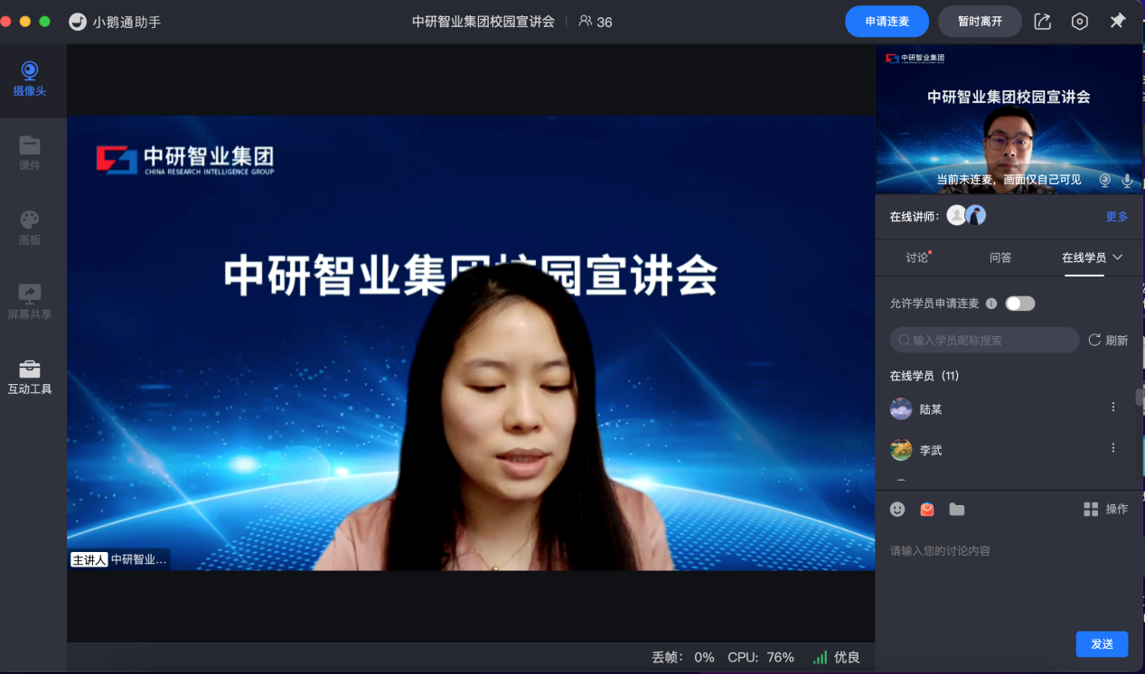 2022年4月28日,857直播组织城乡规划专业毕业生参加中研智业规划设计有限公司线上专场招聘会。