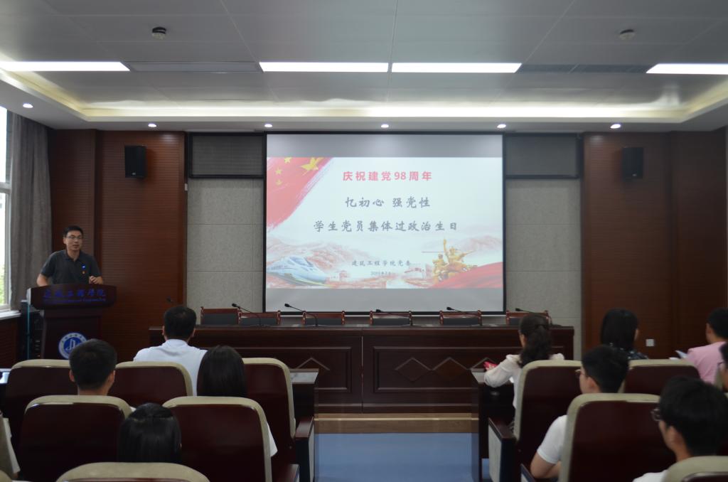 在庆祝中国共产党建党98周年之际,建工学院党委组织师生党员开展了“忆初心,强党性”党员过集体政治生日活动。