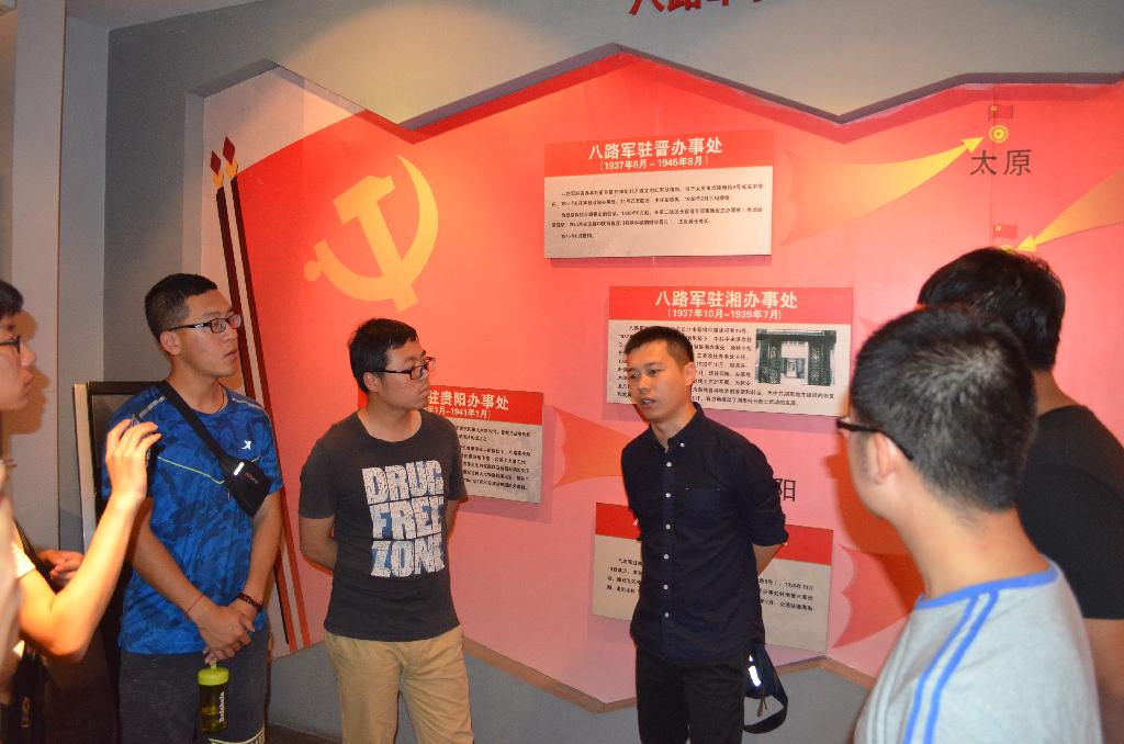 首先,韩霄老师带领团员青年在八路军办事处的一号院前院,面对庄严的团旗进行了庄严地入党宣誓仪式。“我志愿加入中国共产主义青年团......为共产主义事业奋斗终生。”全体团干、团员向党和革命先烈们表示了我们为党的伟大事业奋斗终身的坚定信念,同时铮铮誓言也激励着每一位在场的人。而后,团员青年们在安春雨老师的带领下对八路军办事处的会客厅、接待室、救亡室以及周恩来、叶剑英等党和军队的主要领导人与白求恩等国际友人的住室进行了参观。通过安春雨老师对每一座院落和每一张珍贵照片的讲解,同学们充分的体会到在当时条件极为艰难的情况下革命先烈们所做的艰苦奋斗。尤其是当大家听到安老师说:“当年诸多的志怀高远的爱国青年通过办事处,为躲开国民党的明查暗堵翻山越岭奔赴延安,被誉为是东方的耶路撒冷。”使同学们对革命的奋斗历程更为敬仰和崇敬。最后,全体成员在八路军办事处一起合影留念,此次参观在同学们的心中留下了深刻的回忆。
