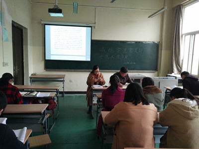 在认真和学生党员一起学习完报告内容并听了大家的发言后,学院党委副书记张艳霞为大家做了十九大报告学习专题辅导并谈了自己的体会。她从教育工作谈起,结合自己身边的实例,从不同角度对十九大报告的进行了梳理,为大家深刻地解读了十九大报告的主要内容,并谈了自身的理解和认识,使大家受益匪浅。同时,张书记对所有党员提出了三点要求:一是努力积极学习十九大精神,思想方面努力向党组织靠拢;二是努力做好自身,既是为人民服务,时刻保持自己身为党员的先进性和带头作用,影响身边人;三是学习十九大精神应从小事做起,从生活中的一点一滴做起,讲礼貌,远离手机等。我们生在好的时代,就该好好珍惜和利用。