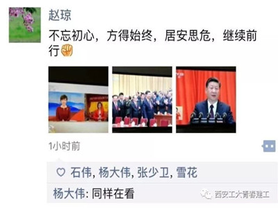 2017年10月18日上午,中国共产党第十九次全国代表大会开幕会在人民大会堂大礼堂举行,857直播的师生们通过电视直播、网络转播等多种方式收看了十九大开幕会,在观看开幕会的过程中,一些老师纷纷在自己的朋友圈抒发自己的感想。