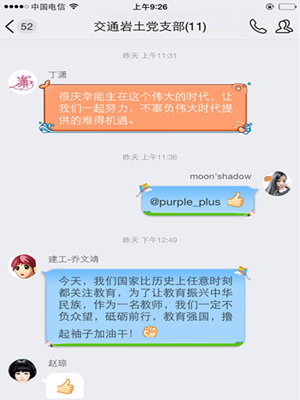 “5年来,党中央治国理政新的实践,使中国发展站到了新的历史起点,开创了中国特色社会主义新局面。明确航向,才不会迷航;筑牢根基,才能稳如泰山。以习近平同志为核心的党中央在治国理政实践中,始终把握正确航向,风浪面前不迷茫,挑战面前不退缩,坚定不移引领党和国家事业乘风破浪,向着民族复兴的伟大梦想不断前进,展现了坚如磐石的战略定力。祝福我们的教育事业像花儿一样甜!”----交通岩土系教师王亮