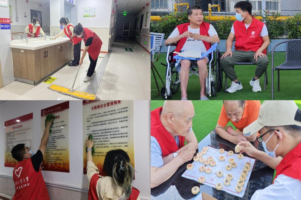 6月8号下午,研究生第一第二支部的部分党员同志前往西安市未央区康久养老院进行志愿者服务。在向老人们介绍本次活动来意之后,志愿者分成两组,第一组志愿者负责打扫老人居住的公共卫生区域,另一组志愿者在露天平台陪老人聊天、和老人下棋等,同学们与老人们进行了亲切的交流,仔细询问爷爷奶奶们的身体情况、生活情况,认真聆听他们的心声。