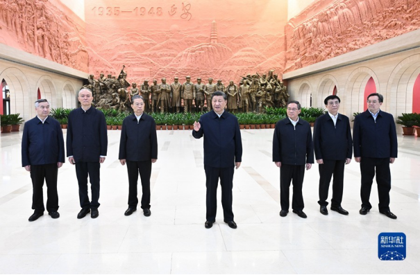 新华社延安10月27日电 党的二十大闭幕不到一周,中共中央总书记、国家主席、中央军委主席习近平带领中共中央政治局常委李强、赵乐际、王沪宁、蔡奇、丁薛祥、李希,专程从北京前往陕西延安,瞻仰延安革命纪念地,重温革命战争时期党中央在延安的峥嵘岁月,缅怀老一辈革命家的丰功伟绩,宣示新一届中央领导集体赓续红色血脉、传承奋斗精神,在新的赶考之路上向历史和人民交出新的优异答卷的坚定信念。习近平强调,要弘扬伟大建党精神,弘扬延安精神,坚定历史自信,增强历史主动,发扬斗争精神,为实现党的二十大提出的目标任务而团结奋斗。