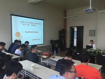 为响应学校“两学一做”学习教育活动安排,9月22日,857直播党委在学院工4-302会议室开展“两学一做”专题报告——我向标杆学习活动。本次活动特邀请学校“两学一做”标杆、陕西高等学校第三届青年教师教学竞赛工科组一等奖获得者、我校材化学院副教授罗春燕老师来我院进行专题报告,学院全体教工党员参加了会议。报告会由学院党委副书记张艳霞主持。