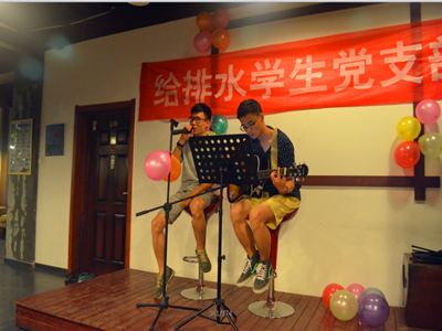 晚会在才艺表演和经验分享两个环节穿插中进行,舞蹈串烧,歌曲《笑忘书》《我说今晚月亮真美,你说是的》,吉他弹奏《同桌的你》《独家记忆》等一系列表演及中场游戏环节老师与武毅同学即兴表演的情景剧《导员心情不好的时候》让整个晚会充满欢声笑语,刘利剑等学长认真又精彩的经验分享让在坐的学弟学妹们深有所思,帅气又可爱的王亮老师最后一段离别赠言让大家满怀斗志,朝气蓬勃。活动最后,在一曲《朋友》合唱声中,由石老师代表给排水学生党支部为毕业生们送上了学弟学妹们的离别寄语贺卡;师生互致祝福,晚会完美落幕。整台晚会持续2小时。