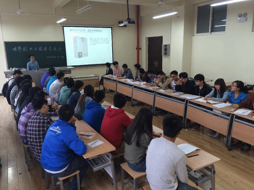 活动首先就同学们大学里的书籍阅读情况进行了问卷调查,党员代表从世界读书日的来源、设立目的、阅读宣传片以及总理在今年两会政府工作报告中关于建设书香社会的讲话四方面宣传了读书的意义和重要性。随后,支部党员们分别给大家推荐了自己认为值得阅读的书籍,分享阅读乐趣,很多同学认真做着笔记,各年级积极分子也就自己喜爱的书籍积极发表见解,会场气氛活跃,同学们交流思想不断深化,一次次碰撞出思维的火花。其中推荐书籍涉及文学、哲学、历史、自然科学等多类图书,拓展了学生们的阅读面和思维模式。最后,支部宣传委员李航总结了问卷调查中存在的问题,并鼓励同学们积极阅读,养成良好的阅读习惯。