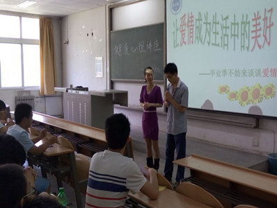 此次讲座主要围绕大学生的恋爱观进行。林老师先由击鼓传花的经典小游戏来调动大家的积极性,紧接着阐述了人为何要恋爱以及失恋后可能会遇到的心理问题。林老师讲解形象生动,尤其一句“欠什么债都不要欠感情债”给学生留下了深刻的印象。紧接着林老师通过一些小故事,让学生们懂得面对恋爱中的问题要勇敢,对待感情挫折要积极对待。最后,林老师借助几个小短片讲述了失恋并不可怕,告诫大家要珍爱生命、理性对待失恋。