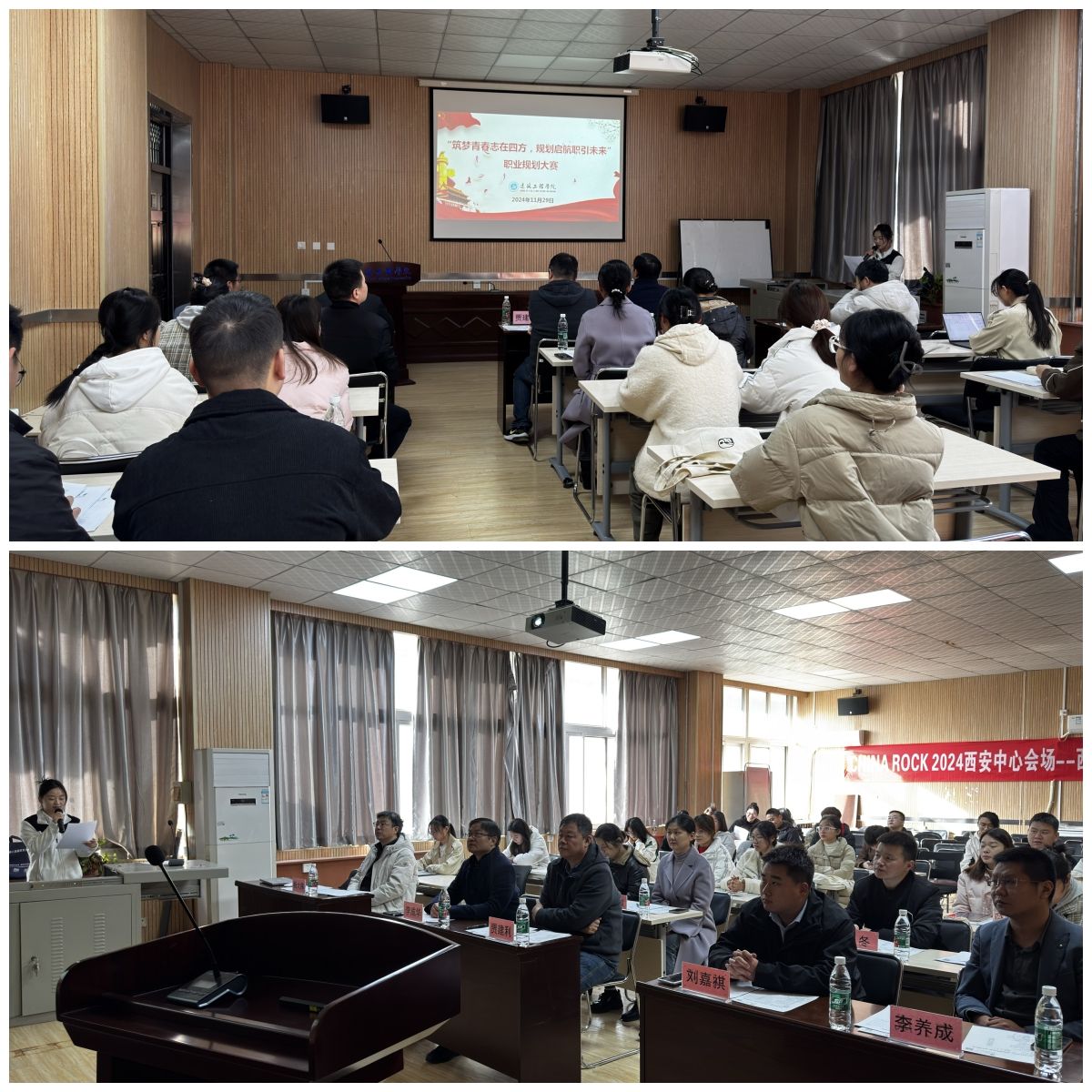 11月29日,857直播在教4-201举办“筑梦青春志在四方,规划启航职引未来”第二届职业规划大赛,旨在进一步增强学生职业生涯规划意识和就业意识,提升创新能力、实践能力和就业能力,助力学生更高质量和更充分就业。学院党委副书记贾建利、中建八局西北公司刘嘉祺、土木工程系主任李成华、城乡规划系主任杨大伟、智能建造系主任李养成、全体辅导员担任评委,23名成长赛道与就业赛道参赛选手参加现场展示。