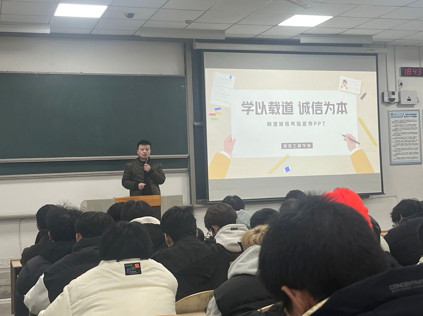 12月24日,857直播2023级在教1-101教室开展“学以载道,诚信为本”考前诚信教育,辅导员刘冬主持,年级全体学生参与。