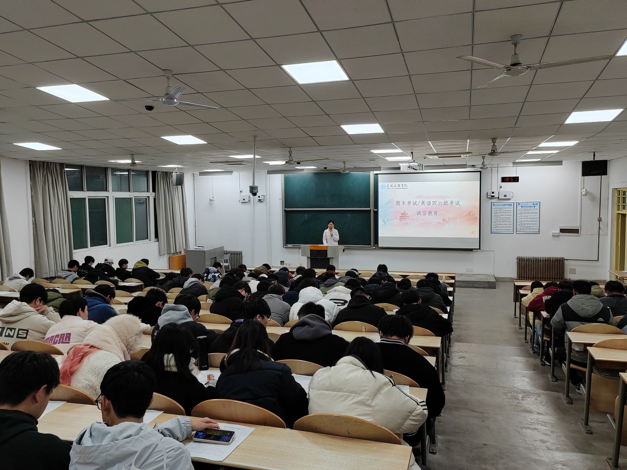 12月9日教1-101年级大会现场,秦老师言辞恳切地剖析着一系列因邮购境外非法出版物引发的真实案例背后的深层危害,台下的同学们目不转睛地盯着屏幕,仿佛看到了那些看不见的思想陷阱,心中已然筑起一道抵御非法读物的坚固防线。