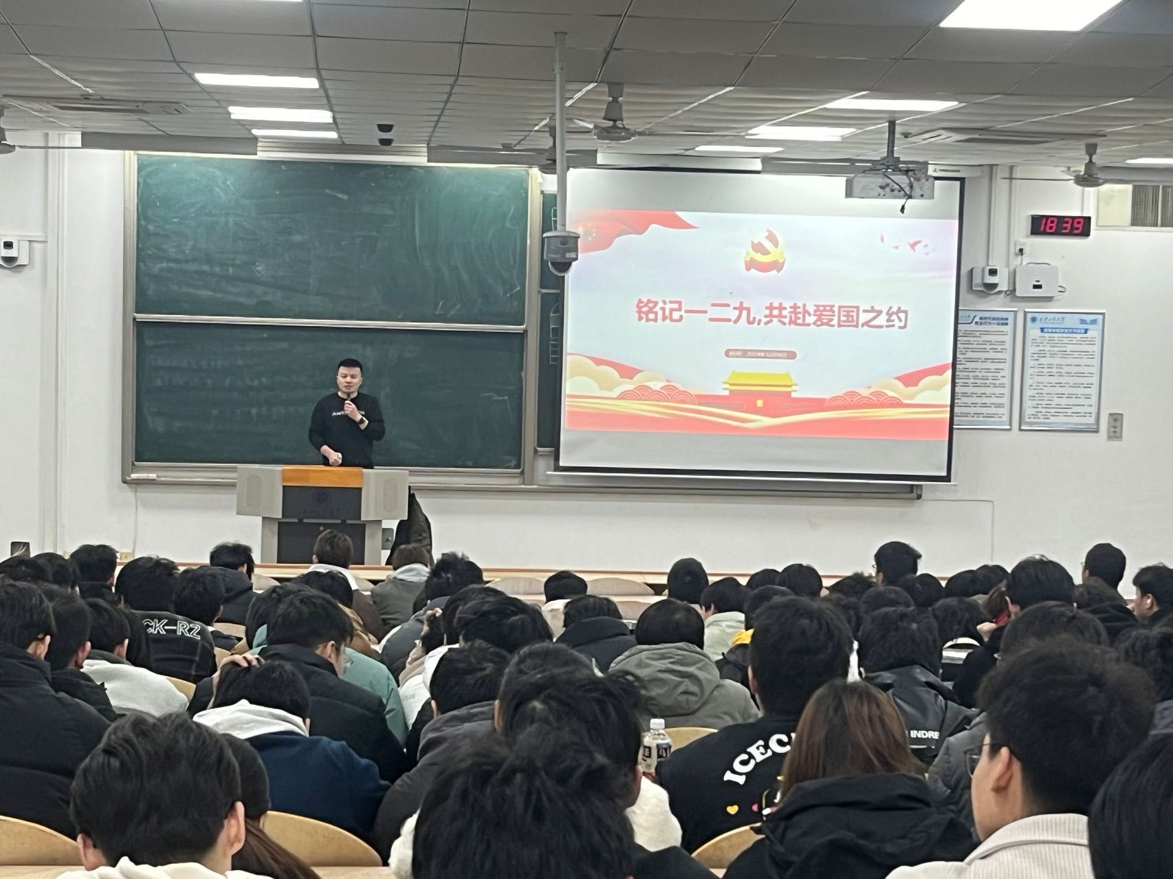 12月9日,857直播在教1-102开展“励好报国志,厚植爱国情”爱国主义教育主题年级会议,辅导员刘冬和全体2023级本科生参加。