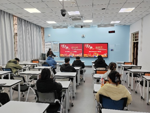 宪法宣传进宿舍活动通过进入学生宿舍区宣传法治知识、发放宪法知识手册等方式,将宪法知识带到学生身边,使宪法教育更加贴近学生日常生活。“法治绘新篇,画中公正意”法治作品征集活动则鼓励学生通过艺术创作表达对法治的理解和感悟,征集到的作品包括绘画、书法等多种形式,展现了学生们对法治精神的深刻理解和创意表达。“《民法典》进校园”等系列主题团日活动通过深入解读《民法典》的相关内容,增强学生对法律知识的了解和应用能力。