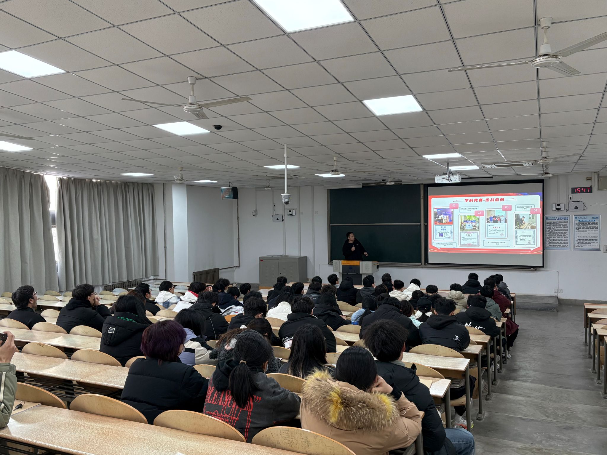 推免成功学生韩佳序以考研为切入点,详细讲述了自己在学业、科研、竞赛等方面的成长经历,希望大家注重学习效率和学习方法,拒绝勤奋绑架、爱惜身心健康。十佳大学生石金阳围绕学习成绩、科研创新、社会实践等方面进行分享交流,并以专业课程学习为例向大家介绍自己的学习方法,勉励学弟学妹明确学习目标和计划,重视课堂笔记记录和整理,处理好学习和生活之间的关系。不仅让同学们获得了丰富的知识和经验,对未来的学习和规划受益匪浅。最后,刘冬对同学们进行学习动员,希望大家认真复习、积极备考,向优秀学子看齐。
