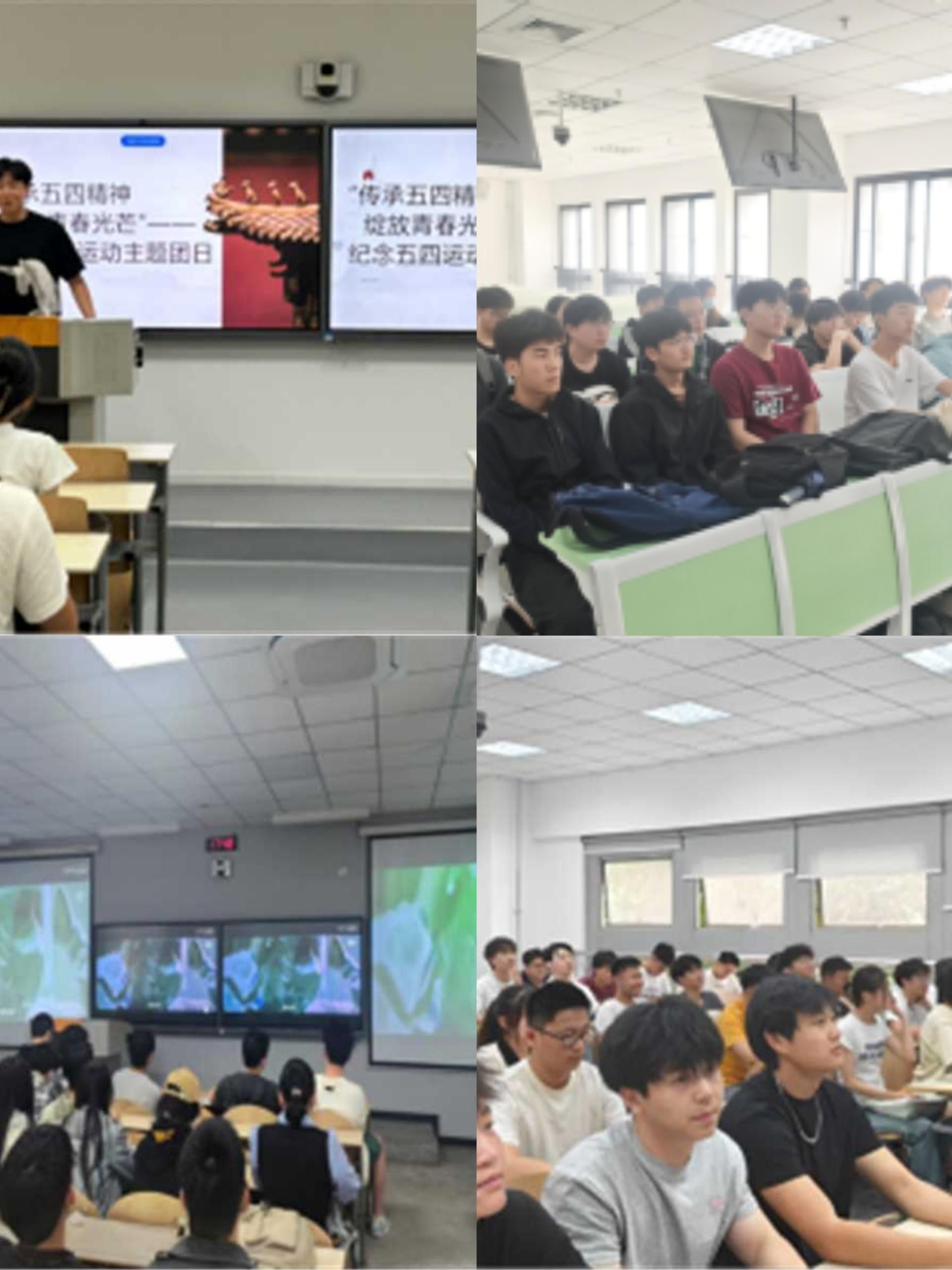 部分团支部由团支书带领同学们从五四运动的历史意义,五四精神的核心价值,五四精神在当代的体现,五四精神与青春使命的关系等方面开展活动,让青年深入了解五四运动爆发的历史背景、过程和深远影响,铭记这段波澜壮阔的历史,明白国家独立、民族解放的来之不易。同时,还有很多团支书组织同学们观看了五四运动纪录片,生动再现当时青年学生走上街头、振臂高呼的场景,使青年直观感受那段激情燃烧的岁月。“五四运动就像一座不朽的丰碑,时刻提醒着我们,作为新时代的青年,要铭记历史,传承和弘扬五四精神,以爱国之心、强国之志,为实现中华民族伟大复兴贡献自己的力量。”同学们在看完纪录片之后发出感叹,积极发言,纷纷表示要学习先辈们的优秀精神,在中国式现代化的建设中,燃烧青春的力量,绽放青春的光芒。