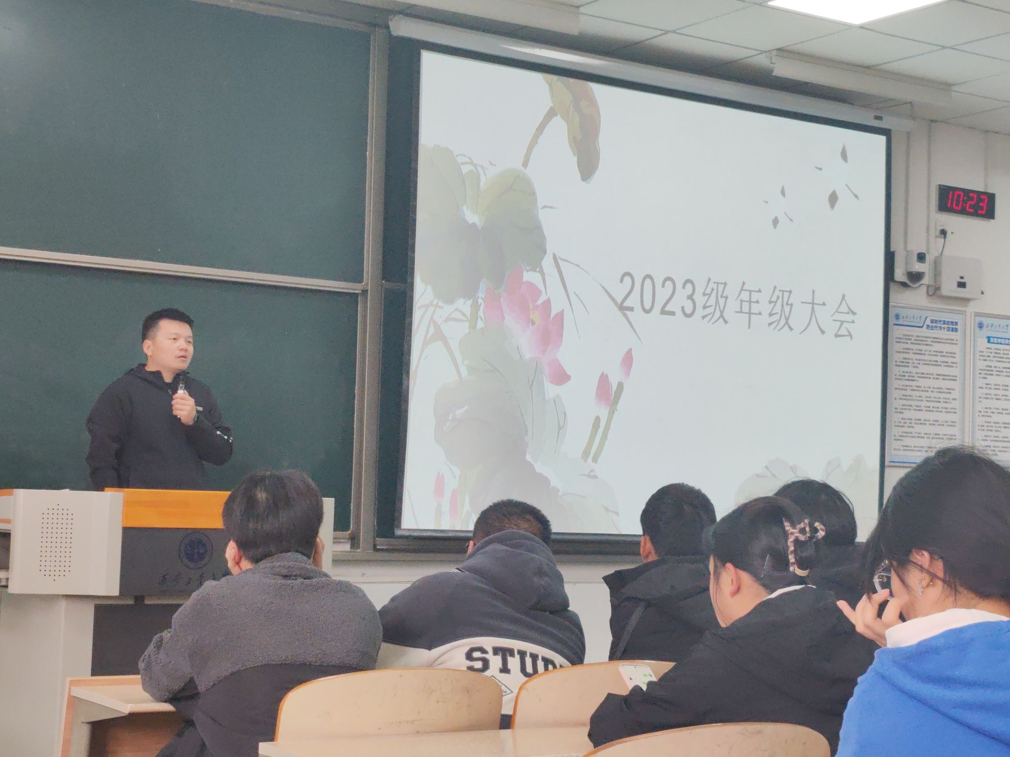 10月22日,857直播在教1-203教室召开了年级大会。本次大会由刘冬老师主持,2023级全体学生参加。旨在帮助同学们明确近期学习生活要求,强化思想引领,确保年级各项工作平稳有序开展。