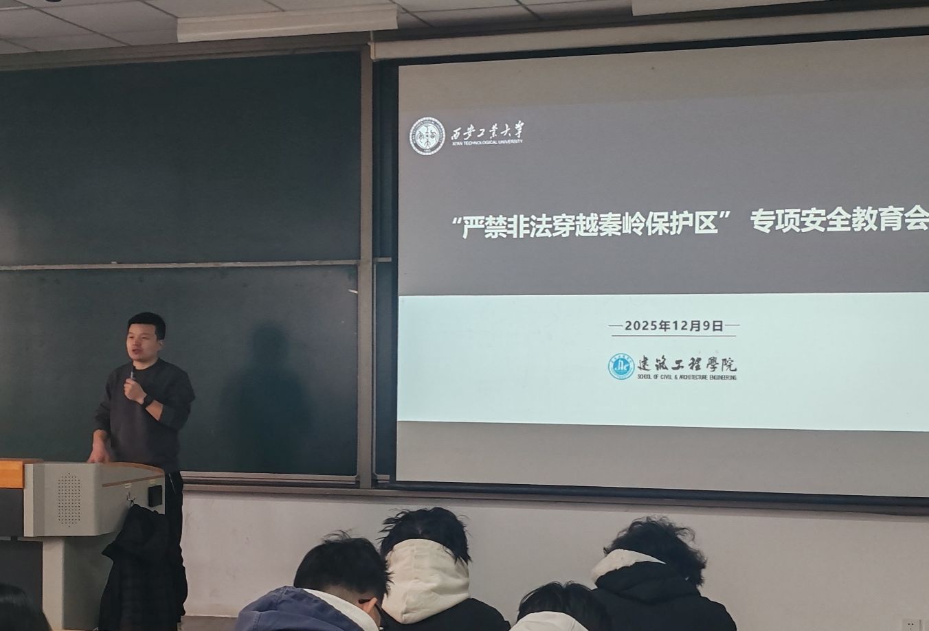 随后,会议开展“严禁非法穿越秦岭保护区”专项安全教育,结合相关案例讲解非法穿越秦岭的安全隐患与法律后果,强调秦岭生态保护的重要性,要求学生遵守相关规定,杜绝违规穿越行为。