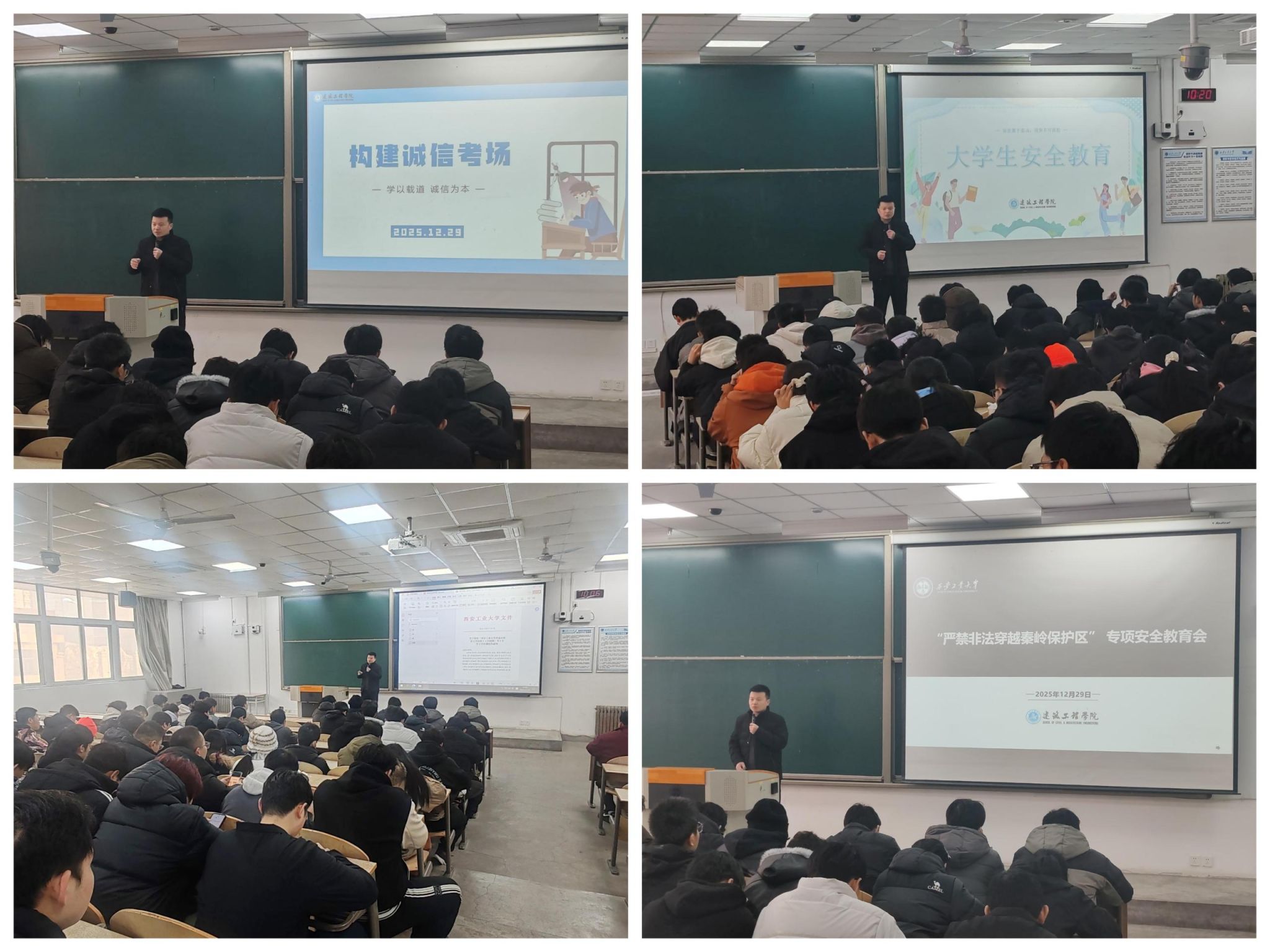 会上,大会第一项议程聚焦宪法专题学习,主讲老师围绕宪法核心内容与大学生相关法律条款展开宣讲,结合校园生活、实习就业等贴近学生的案例,引导同学们树立尊法、学法、守法、用法的法治观念;大会第二项议程为学业政策解读,老师逐条讲解学校本科毕业生学位授予细则,针对学分认定、考试规范等进行细致解答;大会第三项议程开展安全教育宣讲,内容涵盖校园消防、网络安全等要点,同时针对“严禁非法穿越秦岭保护区”进行专项讲解,结合真实事故案例强调生态保护的法律责任与自身安全的重要性。