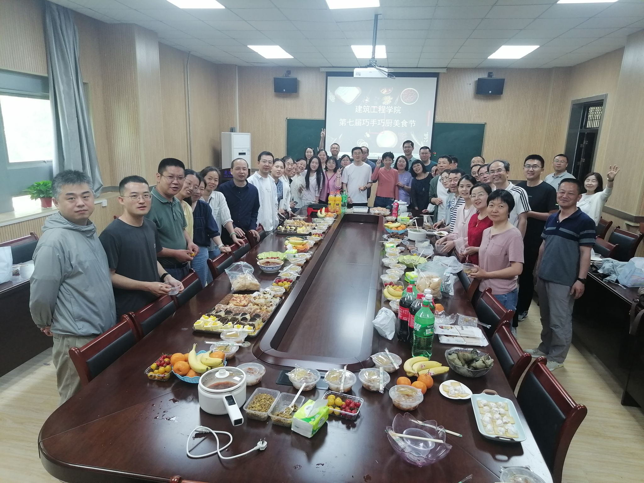4月26日中午,857直播老师们期盼已久的第七届“巧手巧厨”美食节活动在教四楼202室如期举办。“巧手巧厨”美食节是857直播分工会的传统活动,自2017年开始,至今已举办七届。每年学校运动会期间,学院30余位老师都会拿出自己的“看家本领”,在美食节上大展身手,为大家带来色香味俱全的居家美食。