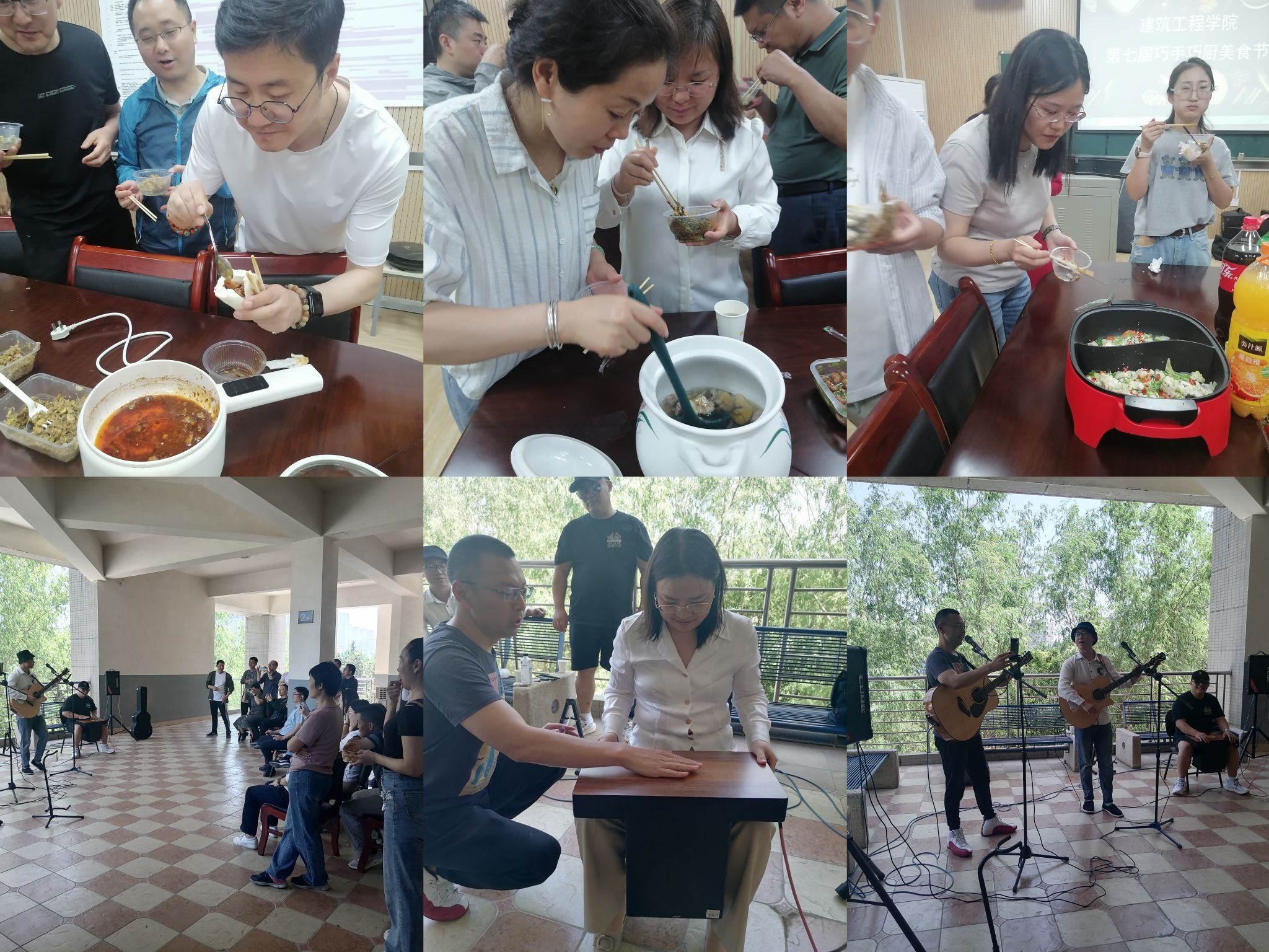 今年的菜品不仅有现炸油饼、香菜酱、凉拌香椿、纸杯蛋糕等美食节“常客”,还有水果奶冻、香辣黄辣丁、炝锅鱼、槐花麦饭、岐山肉臊子夹馍等新菜式,30余种美食纷纷呈现在大家面前,让人目不暇接、垂涎欲滴、食指大动。经过品尝,大家一致认为,吴佳妮老师的香辣黄辣丁、党晓芳老师的岐山肉臊子夹馍、黄毅老师的炝锅鱼、丁潇老师的油饼、田英侠老师的排骨玉米汤等美食是名副其实的“建工美食”。