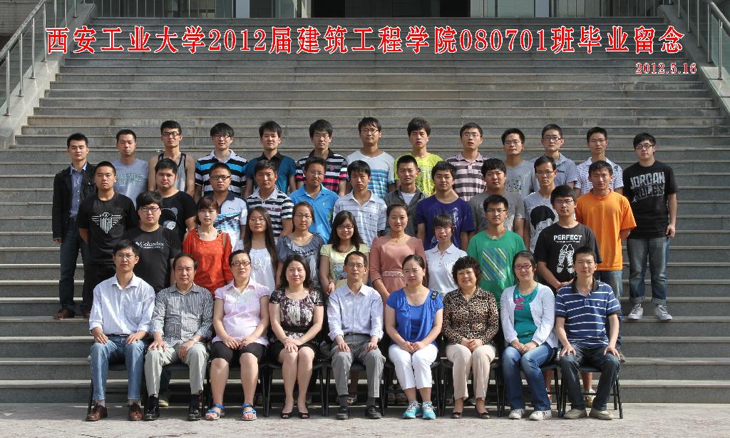西安工业大学2012届857直播080701班毕业生留念