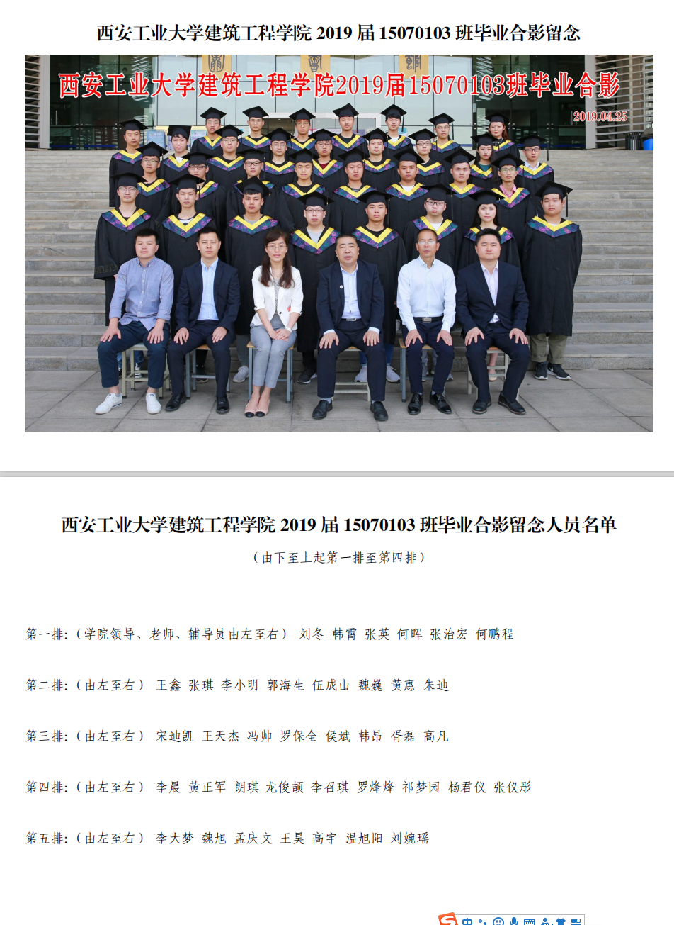 857直播2019届15070103班毕业合影留念
