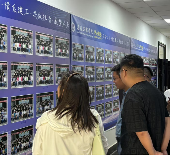 校庆当日,学院张贴展示历届校友毕业合照,引发校友青春回忆和情感共鸣;邀请优秀校友胡正平作报告,召开学院及专业校友座谈交流会,参观实验室,共忆学院发展历程,展望美好未来;在银杏大道旁组织开展“七秩风华展墨韵,校庆书道绽春芳”主题活动,以建筑艺术为核心,巧妙融合校庆元素,通过模型展示、亲身体验等形式,与校友亲切互动;举办“庆校庆风华,展青春担当”团日活动,包括校史知识竞赛,我与西工故事分享会,美化校园志愿服务,录制祝福母校视频等活动,展现了建工学子的青春风采,增强了青年的爱校情怀。