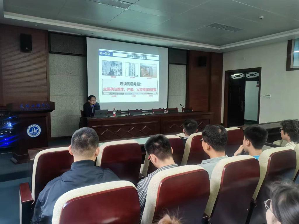 于晓辉教授作了题为“主余震序列作用下结构抗震性能评估”的学术讲座,从历史比较著名的地震出发,指出余震的特点、累积效应及潜在威胁,随后于教授介绍团队在主余震损坏及风险分析方面进行的研究成果,最后学院教师从主震后结构阻尼比、极性等方面提出问题与于教授进行交流探讨。