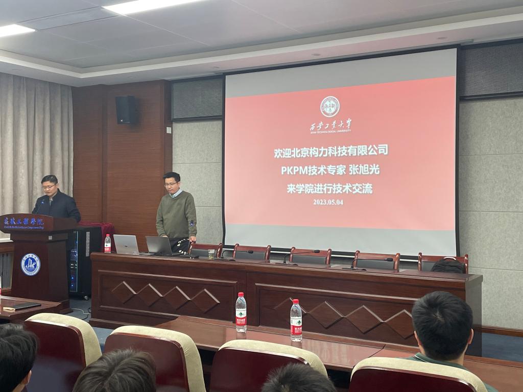 2023年5月4日下午2点在工4楼2楼学术报告厅, PKPM技术专家张旭光老师应邀来我院进行技术交流,土木工程系主任李成华、辅导员组长何鹏程、教师代表以及2019届土木工程系毕业生参加了讲座。