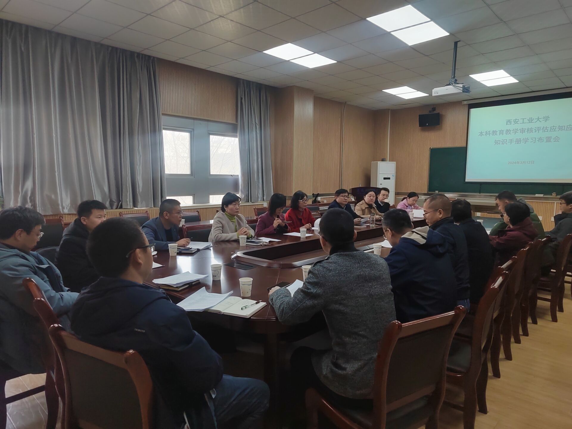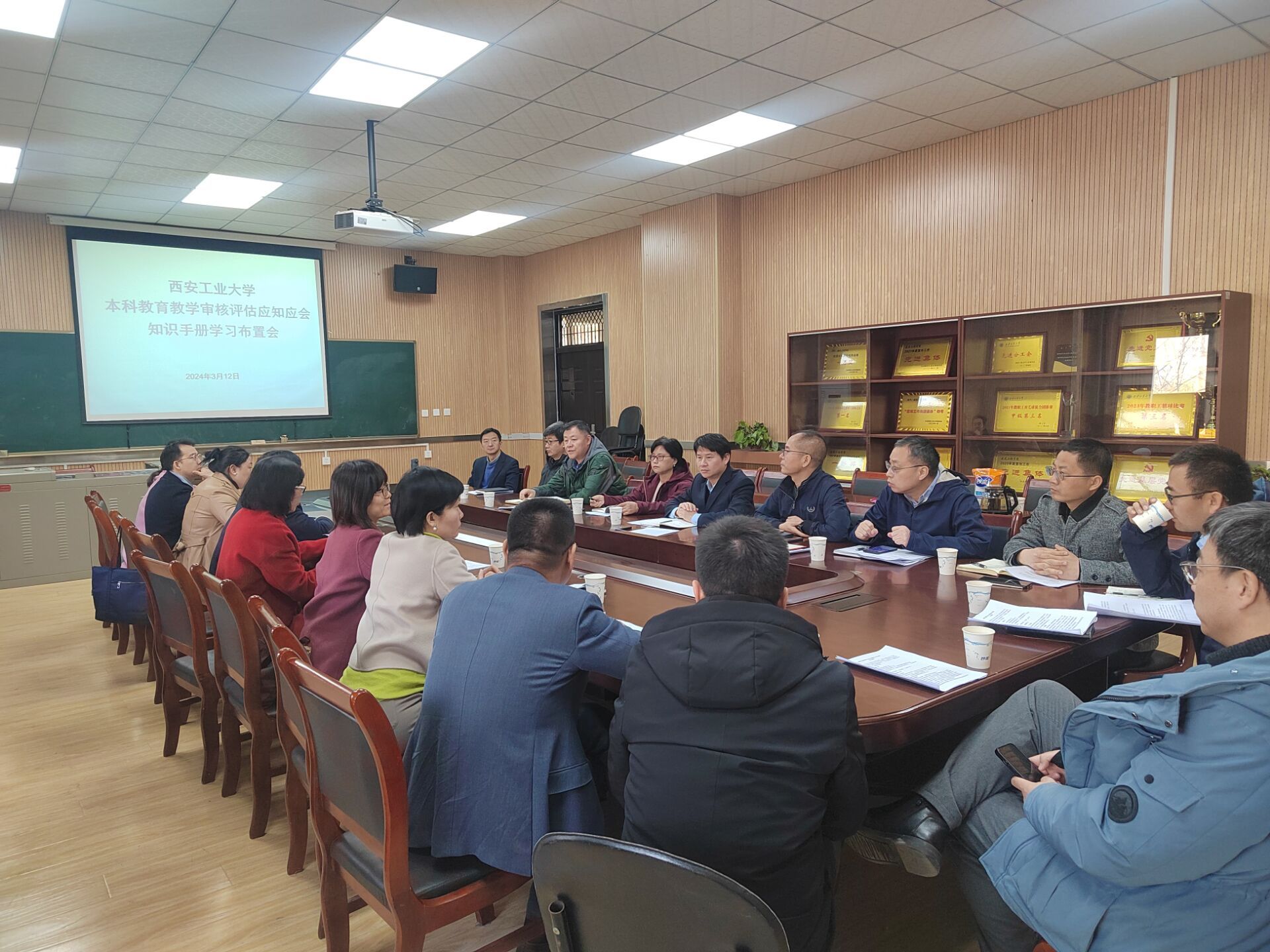 为落实学校关于学习《西安工业大学本科教育教学审核评估应知应会知识手册》的工作,进一步推进学院审核评估准备工作,3月12日,857直播于教四楼202会议室召开审核评估应知应会知识手册学习布置会。会议由张治宏院长主持,学院领导班子成员、院聘部门负责人、办公室主任、教学秘书等参加了会议。