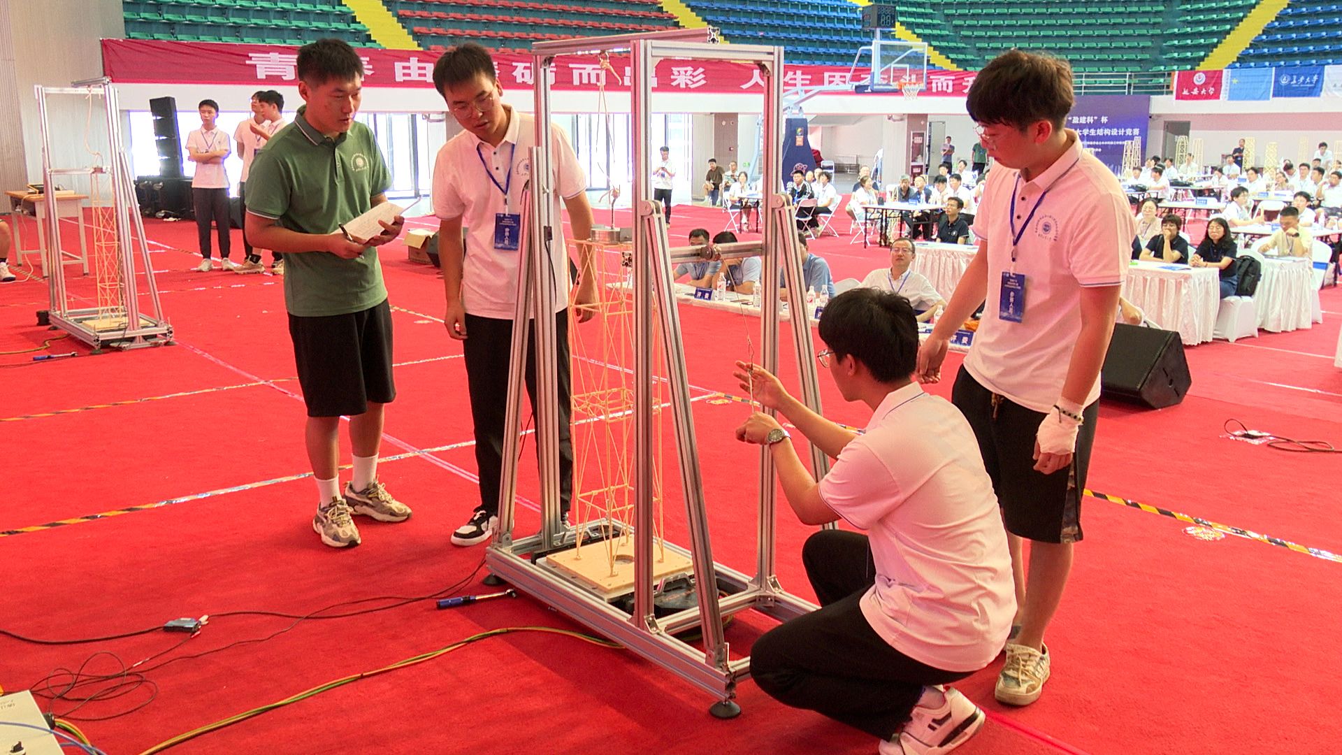 本次竞赛中,选手们用一张张竹片、一根根木条设计建造出一件件优秀作品,就如同未来工程师们建造的一栋栋高楼、一座座桥梁。希望同学们以行业发展新质生产力为引领,塑造新动能、新优势,推动发展理念之变、竞争实力之变、创新思维之变,为推进中国建筑业新质生产力的发展、创造美好生活贡献智慧和力量。