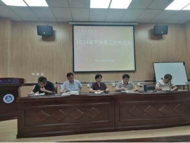 黄华首先通报了上半年学院各项重点工作的完成情况以及审核评估工作中存在的问题,他指出,各项重点工作的完成距离预期目标还有一定差距,各系室和全体教师要进一步凝心聚力,围绕教学、科研等重点工作持续发力,力争先进,争取在各方面取得新进展。同时要以审核评估为契机,针对存在的问题,查漏补缺,加强课堂教学管理,提升教学质量,并认真细致做好教学资料归档工作。其他分管领导分别从本科教学工作及审核评估重点工作、科研及研究生工作、学生管理工作等方面做出了安排,学院党委书记刘慧萍对师德师风建设月活动和意识形态工作进行了安排,强调师德师风的重要性,各系室要深入组织学习,加强师德师风建设,规范教师言行举止,种好意识形态工作责任田,为学院中心工作提供坚强保障。