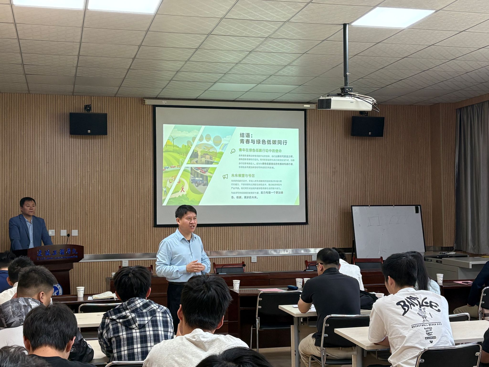 4月28日,由陕西省自然科学学会研究会主办,西安工业大学、西安国态生态科技有限公司承办的“绘低碳建筑蓝图·筑生态宜居未来”校园宣讲会在教4-201会议室举行。陕西省自然科学会研究会副理事长兼秘书长易凤华,西安国态生态科技有限公司董事长余静、总经理刘星辰、西安市建筑双碳科技创新研究会青年专家史光超,857直播院长黄华出席,学院2022级本科生、2023级研究生共计80余人参会,会议由学院党委副书记贾建利主持。
