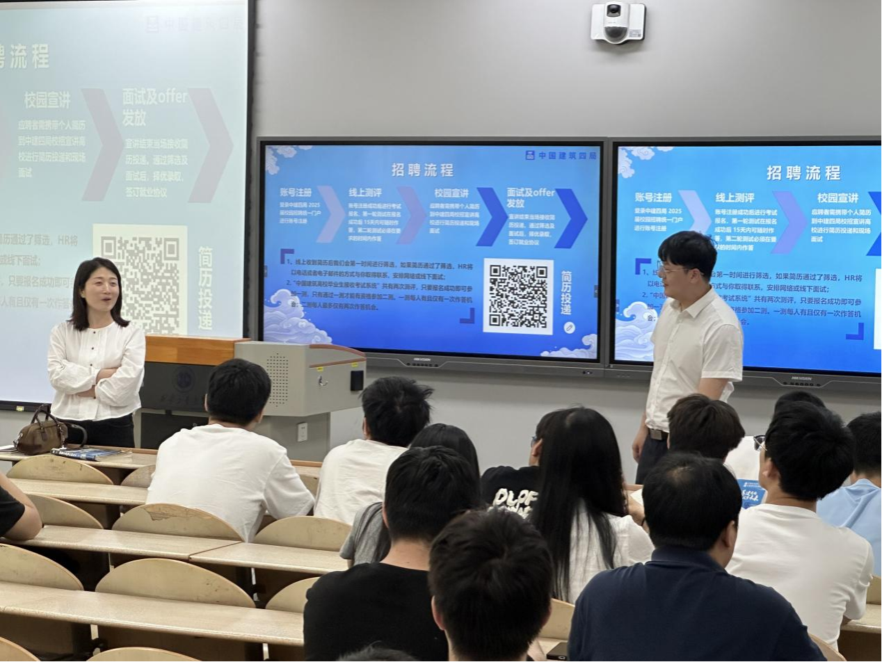 与此同时,中建局西北公司在教2-212举办了专场招聘宣讲会,向我校多个专业毕业生提供了丰富的就业岗位,毕业生们积极投递简历,与企业代表进行面对面交流,现场气氛热烈有序。