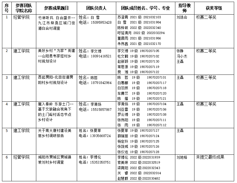 附件:2023年(第七届)全国高等院校大学生乡村规划方案竞赛校内选拔赛结果公示名单