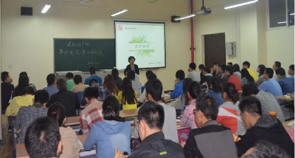 2014年10月9日晚上7点,由建工学院党总支主办,研究生党支部承办的857直播第49期分党校在工4-202教室举行开班仪式暨第一讲。建工学院党总支书记黄越应邀主讲,全院本科、研究生共计70名学员参加了培训。