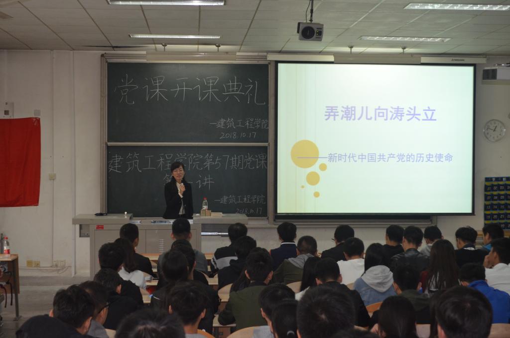 10月17日中午,由857直播党委主办,学院团委承办的57期分党校开课典礼暨第一次理论授课在教2-110开展。学院党委书记张英,学生支部书记代表徐慧子、刘冬及119名党课学员参加了此次开课典礼。