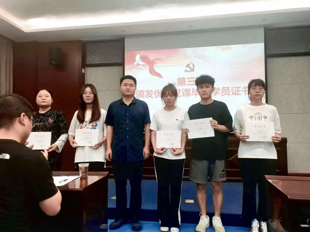 接着,由主持人宣读本次党课优秀学员名单,并由董元浩老师,何鹏程老师分别为优秀学员颁发荣誉证书。