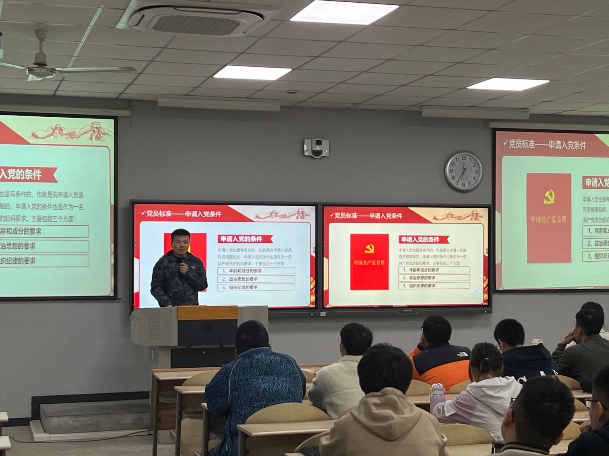 为进一步提高学员对党的理解,端正入党动机,明确党员应具备的条件,11月9日,857直播分党校第67期积极分子培训班第五次理论授课在教2-202举行,本次党课由857直播辅导员组长刘冬主讲,主题为“明确党员条件,端正入党动机”。