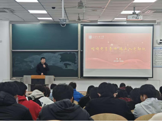 随后,他深入解读了入党誓词的深刻内涵,要求全体学员不仅要在思想上深刻认同,更要在日常学习、工作和生活中脚踏实地,从小事做起,从身边的一点一滴做起,将“全心全意为人民服务”这一根本宗旨内化于心、外化于行,努力在平凡的位置上创造不平凡的成绩。最后,刘老师带领学员们系统性学习了递交入党申请书到正式成为一名党员期间所需要的完整流程及步骤。他殷切期望学员们能够深入学习领会习近平新时代中国特色社会主义思想与党的二十届四中全会精神,坚定理想信念,以党员标准严格要求自己,用实际行动争取早日入党,勇担时代重任,争做有为青年。