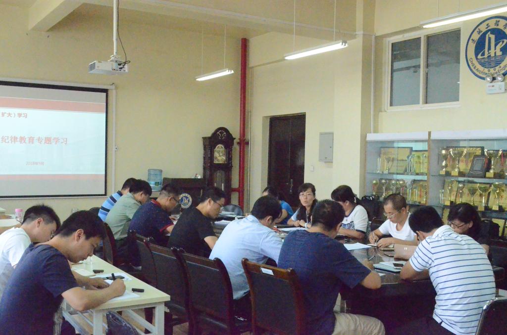2018年9月11日下午,建工学院召开党委理论中心组(扩大)学习会,对纪律教育展开专题研讨学习会。会议由学院党委书记张英主持,学院理论中心组成员、各师生党支部书记参加了学习会。